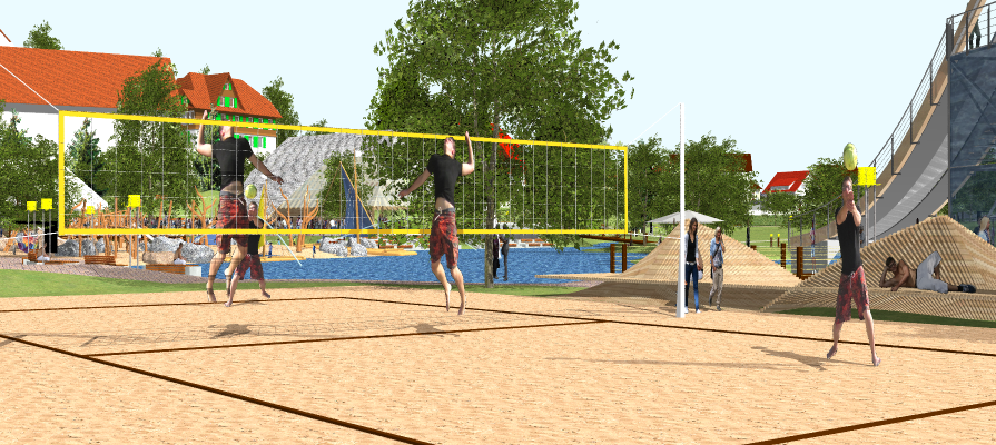 Für Familien mit Kindern gibt es einen abwechslungsreichen Spielplatz mit Rutschen, Schaukeln, Sandflächen und einem Wasserfloß. Sportbegeisterte können sich auf dem Beachvolleyballfeld, an der Tischtennisplatte oder beim Tischkicker austoben. Eine Minigolfanlage mit 18 Bahnen lädt zu einem unterhaltsamen Spiel ein. Erholungssuchende finden zahlreiche Sitzgelegenheiten entlang der gepflegten Wege, die zu gemütlichen Spaziergängen einladen. Eine Kneippanlage sorgt für eine erfrischende Abkühlung. Der Musikpavillon dient als Veranstaltungsort für Konzerte und kulturelle Events. Für das leibliche Wohl sorgt Birgit’s Bistro direkt im Park. ​